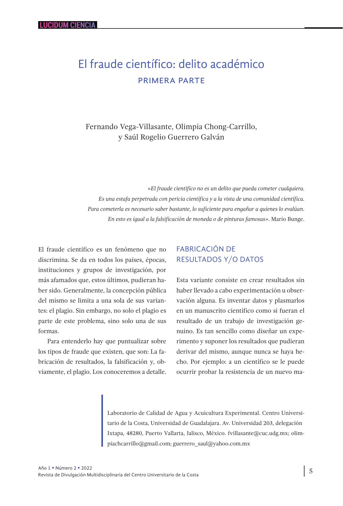 1. El fraude científico: delito académico. Primera parte