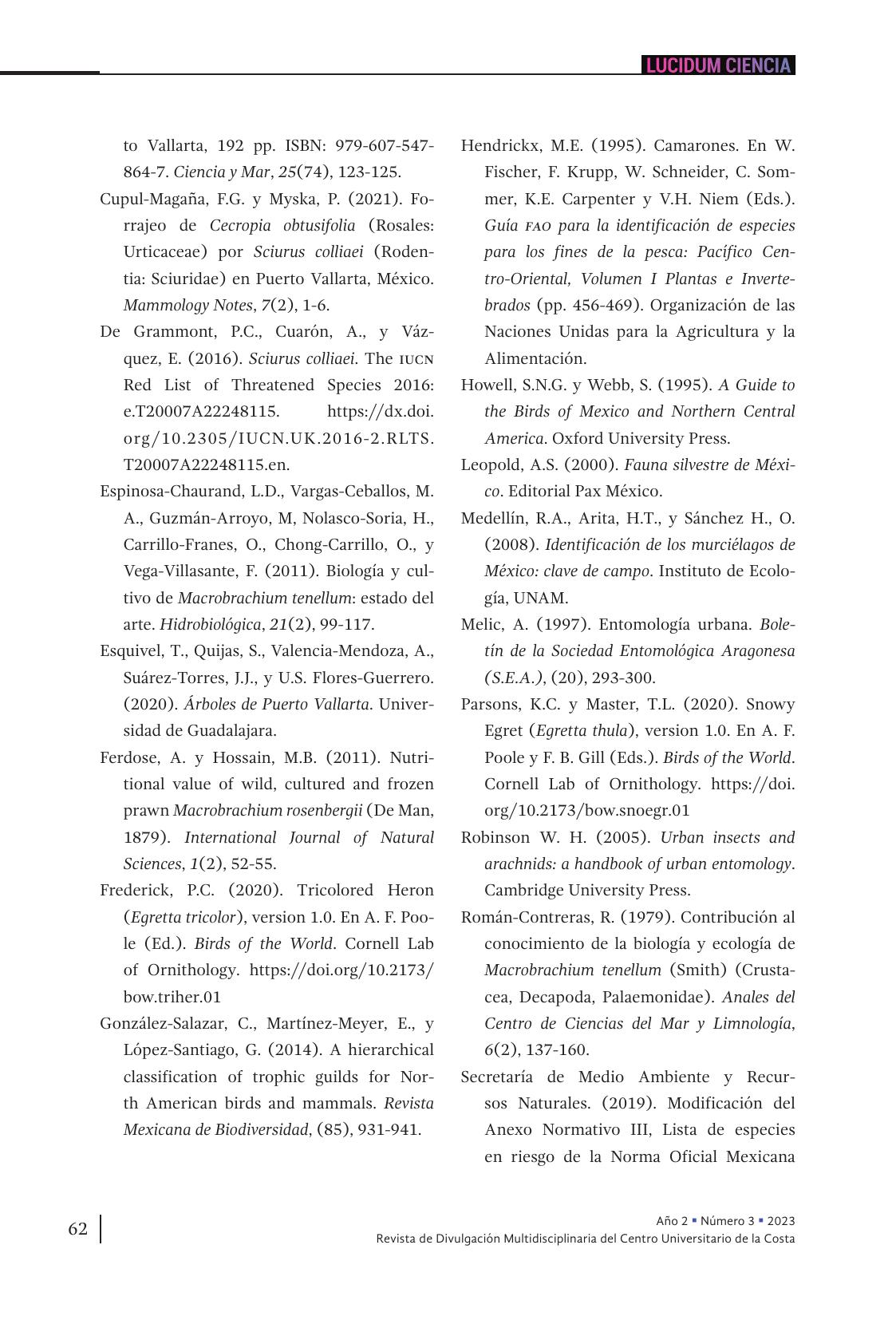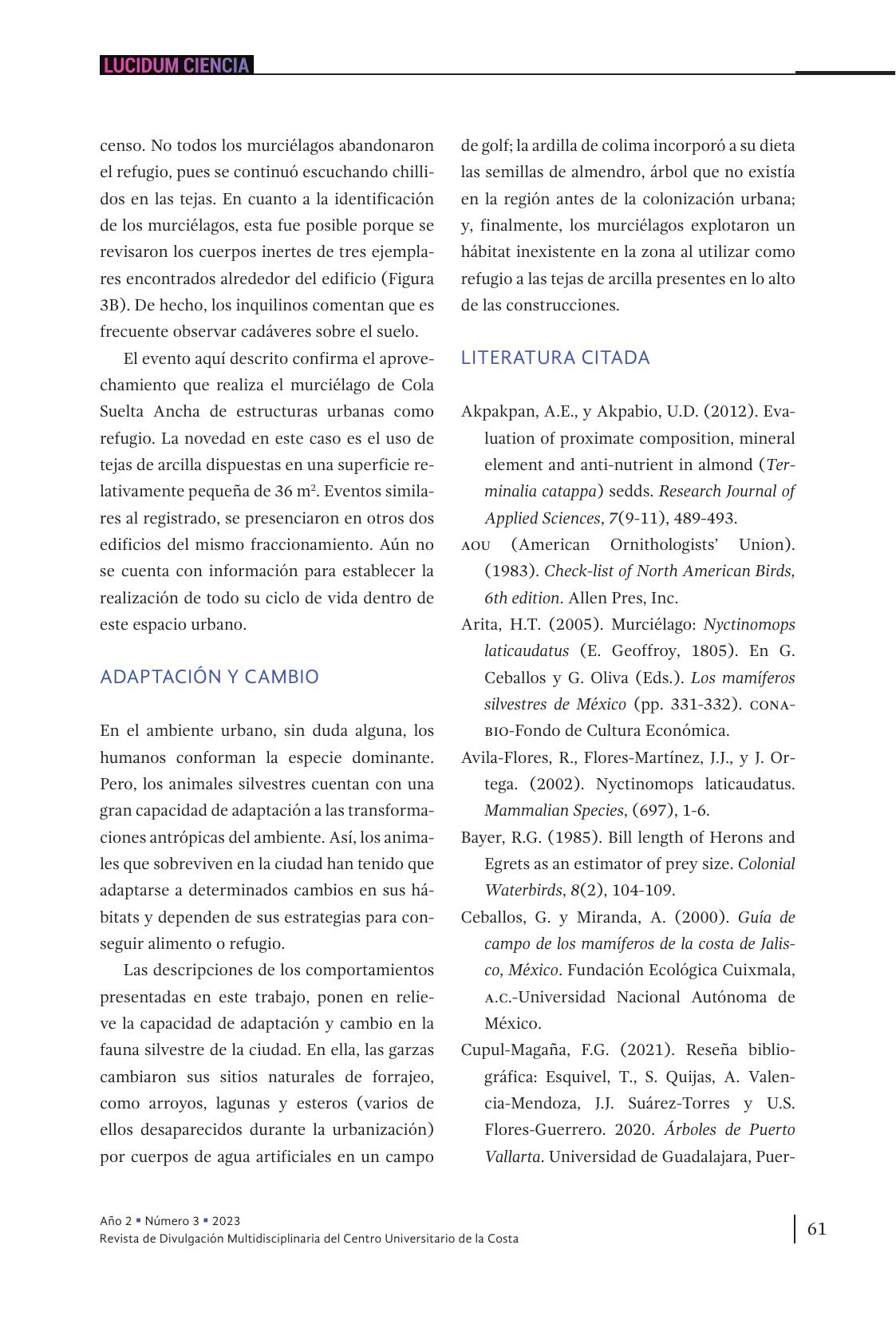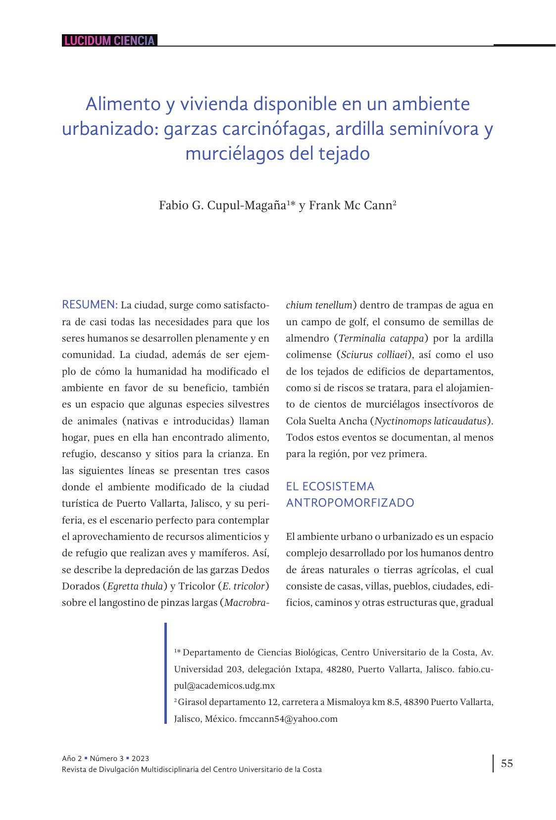8. Alimento y vivienda disponible en un ambiente urbanizado: garzas carcinófagas, ardilla seminívora y murciélagos del tejado