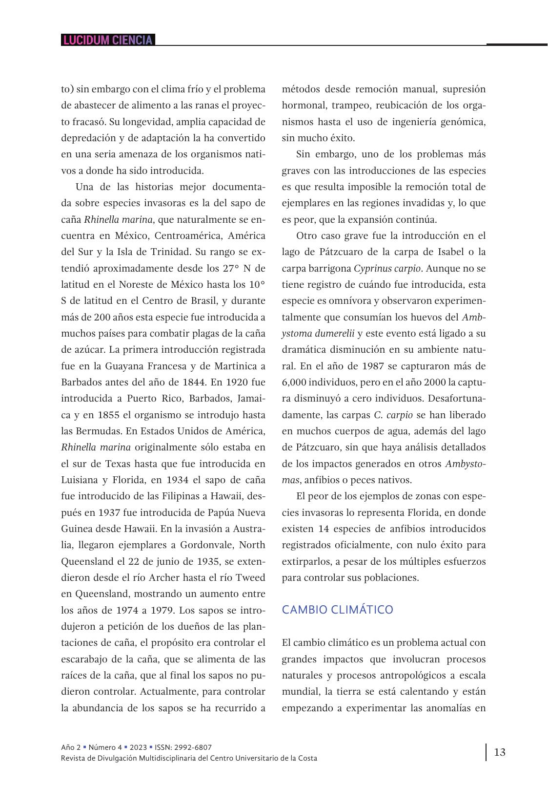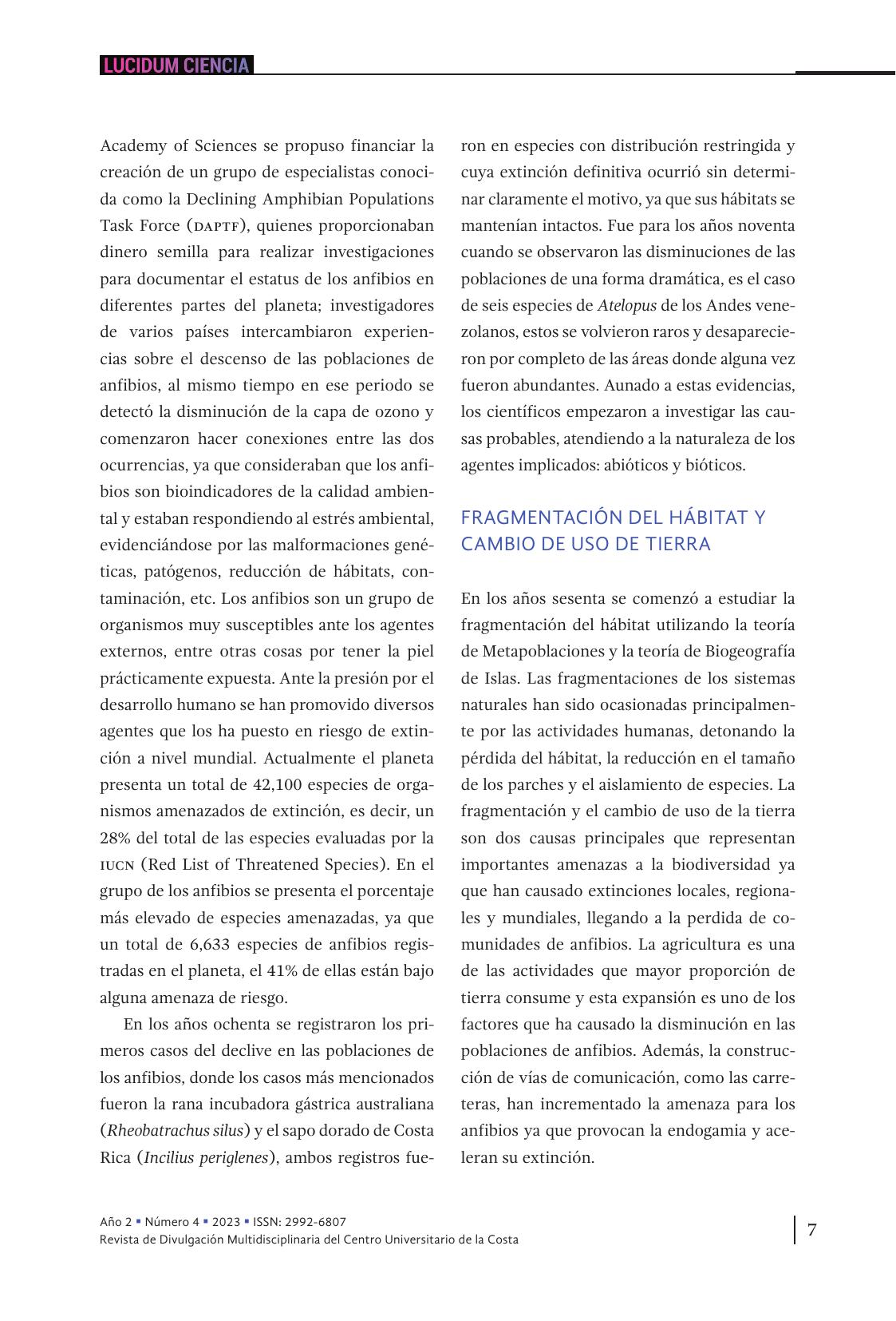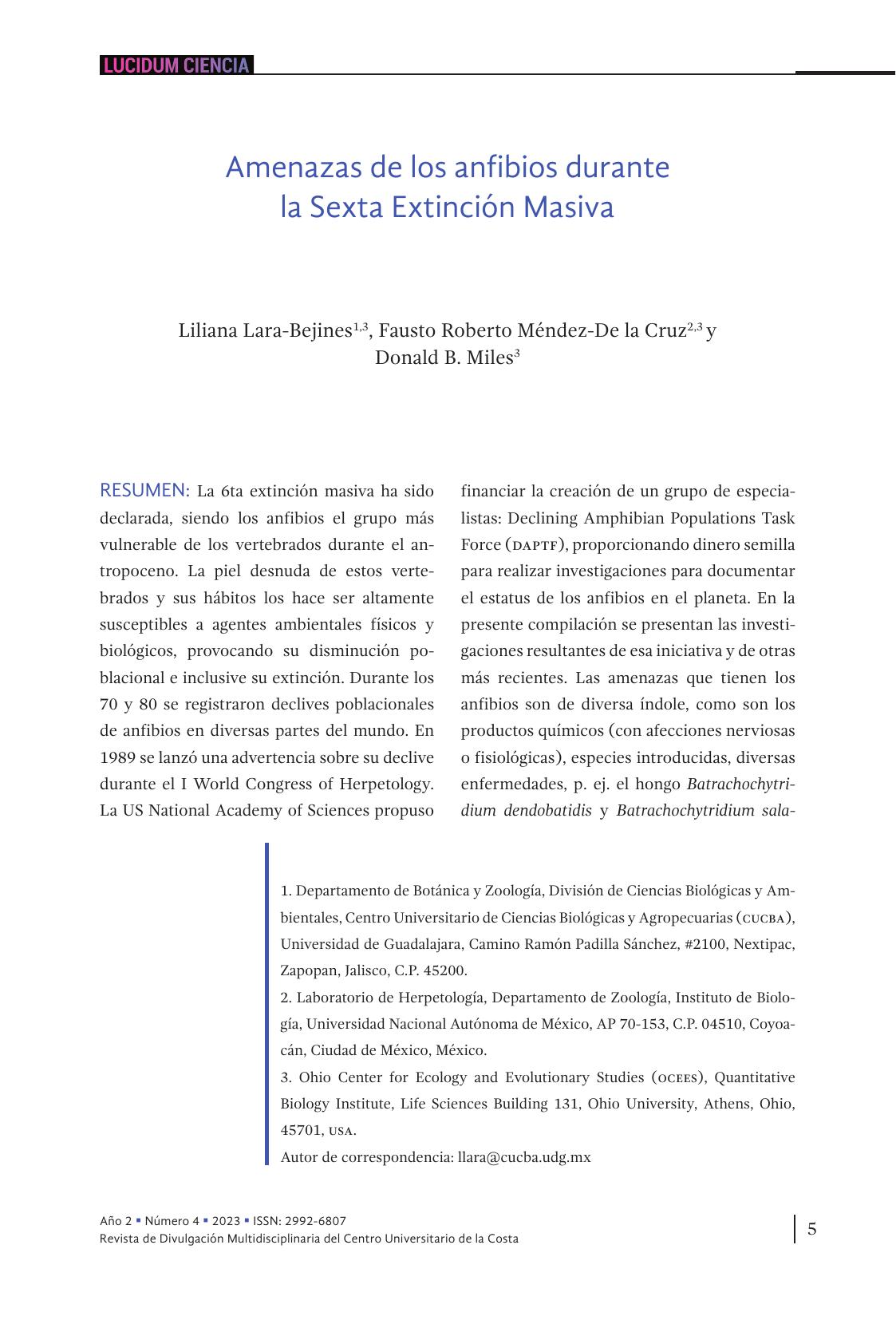1. Amenazas de los anfibios durante la Sexta Extinción Masiva
