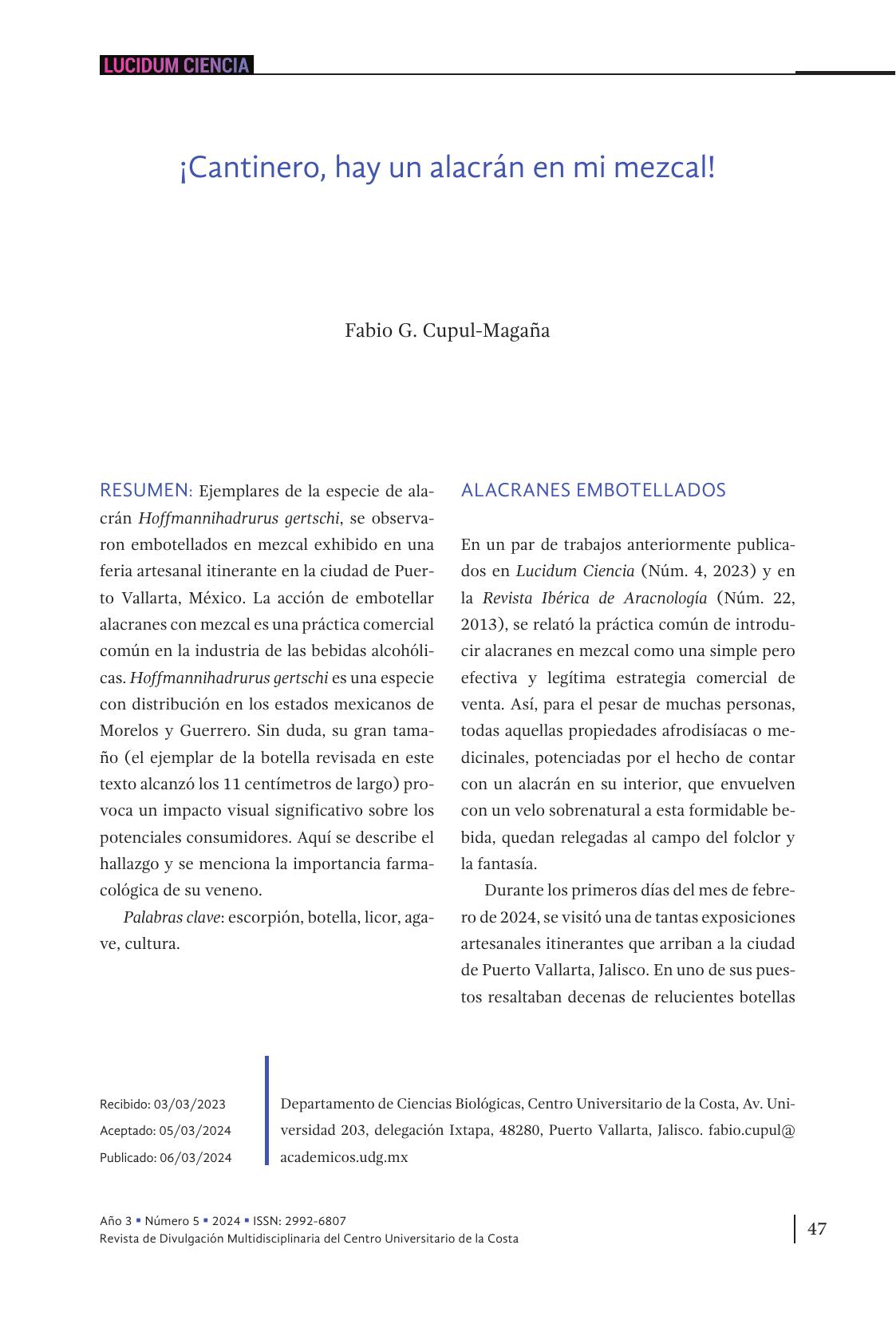 6. ¡Cantinero, hay un alacrán en mi mezcal!