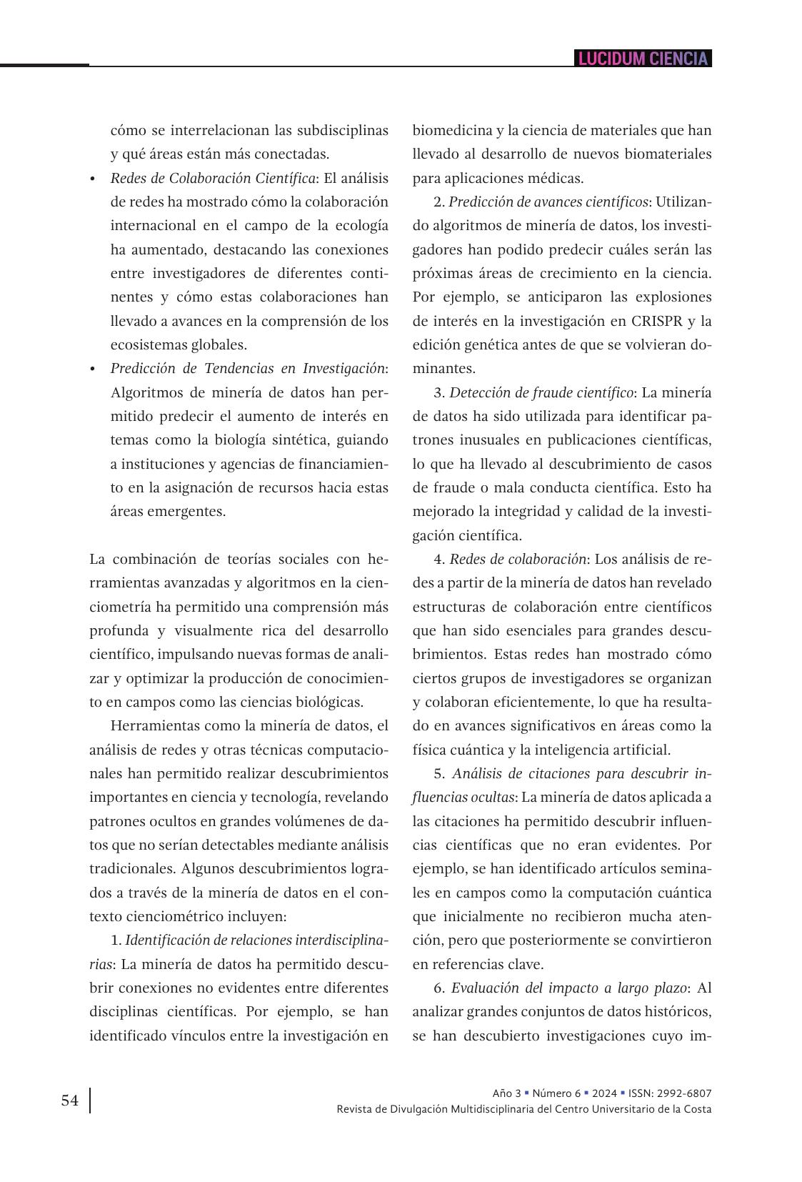 • LUCIDUM CIENCIA, Núm. 6, julio-diciembre, 2024