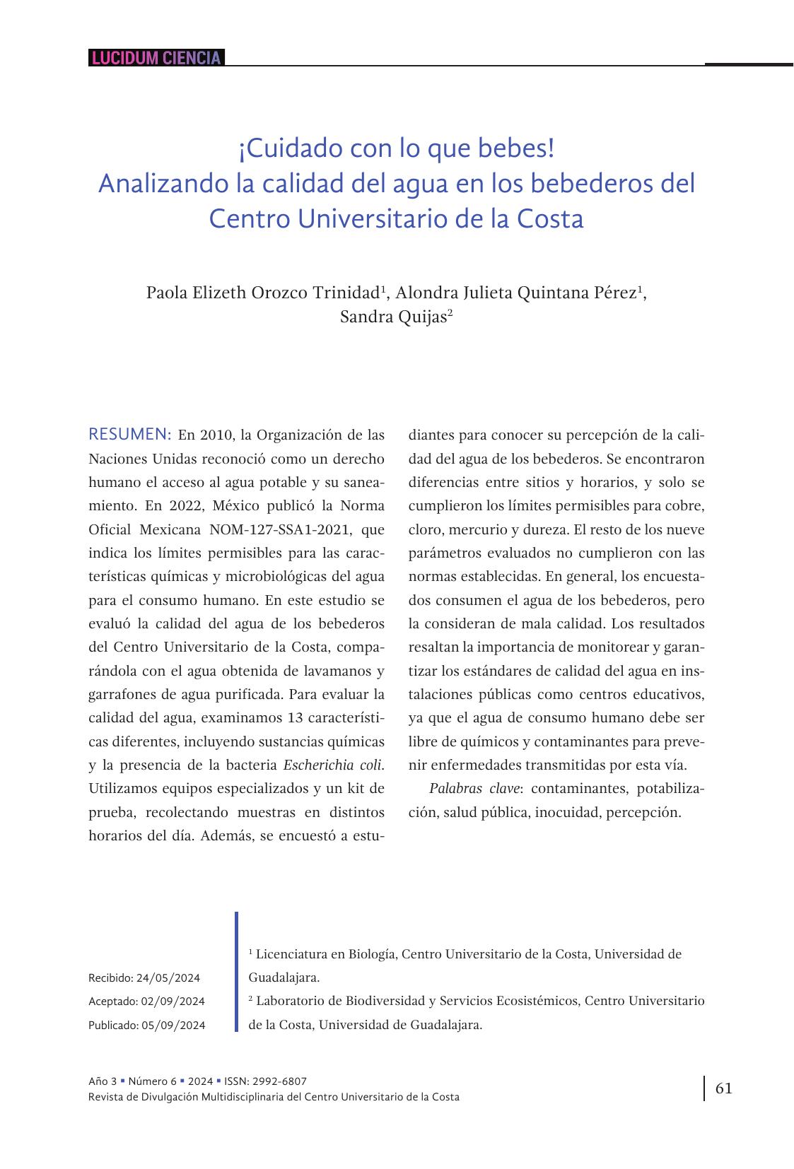 9. ¡Cuidado con lo que bebes! Analizando la calidad del agua en los bebederos del Centro Universitario de la Costa