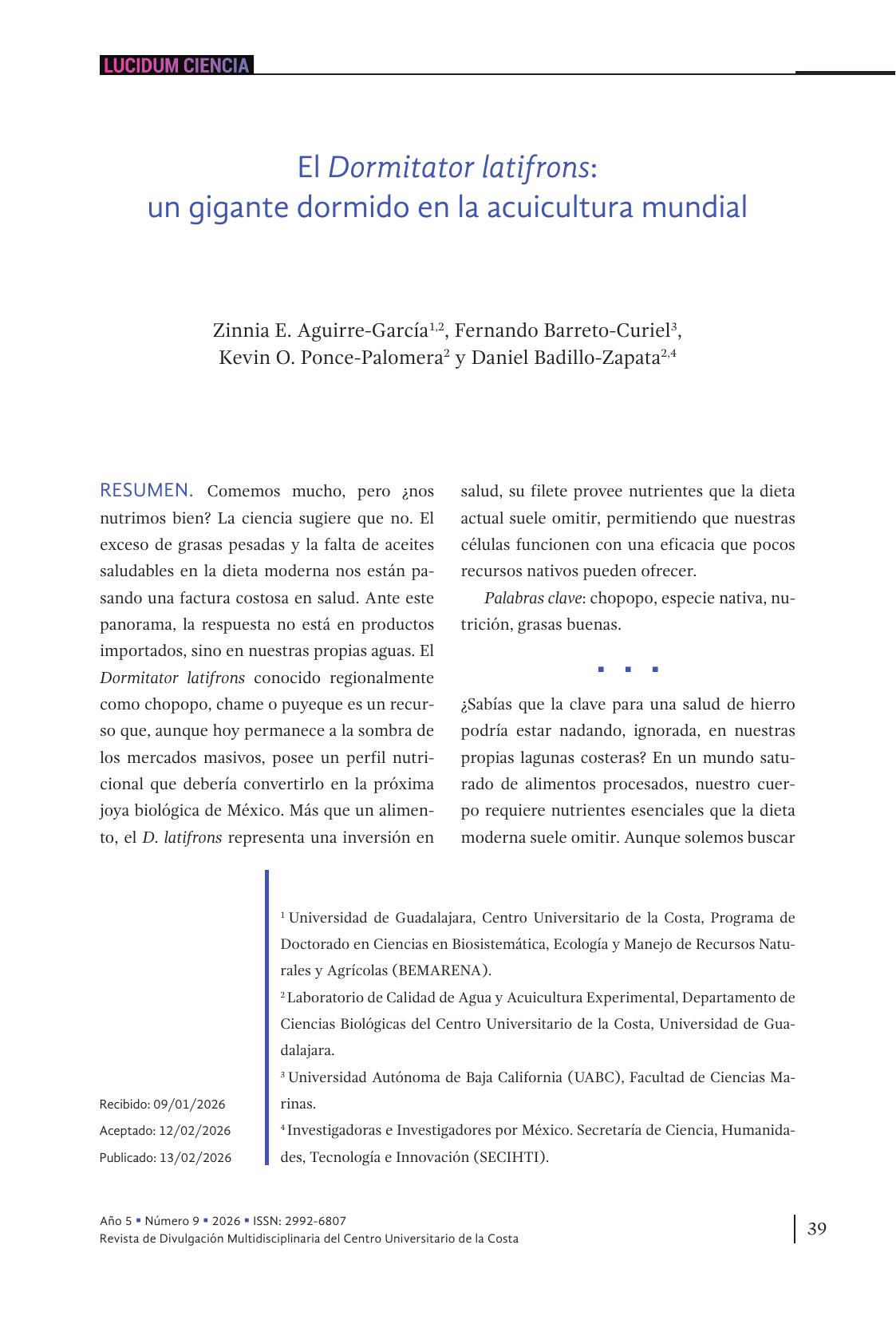 6. El Dormitator latifrons: un gigante dormido en la acuicultura mundial